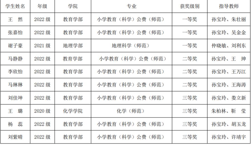 教育学部消息(通讯员 米溢 孙宝玲 许靖宇)日前,由中国青少年科技教育工作者协会主办,西华师范大学和中国青少年科技教育工作者协会科学教师教育专委会承办的第十一届全国科学教育专业师范生教学技能创新大赛(本科生和研究生赛道)决赛奖项公布,太阳城学生获一等奖3项、二等奖3项、三等奖4项,所有指导教师获优秀指导教师,学校获优秀组织奖。