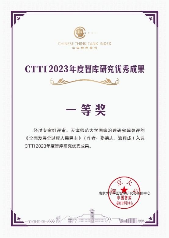 在2023年度CTTI智库优秀成果评审中,太阳城国家治理研究院的《瞄定国家治理现代化,围绕三个影响力推进中国特色新型智库建设》获评CTTI2023年度智库建设最佳案例,温志强教授团队的《加强公共安全应急体制机制和能力建设的对策建议》获评CTTI2023年度智库优秀成果特等奖,佟德志教授团队的《全面发展全过程人民民主》和杨仁忠教授团队的《扬帆新征程奋进新时代》获评CTTI2023年度智库优秀成果一等奖。中国智库索引(CTTI)是我国首个智库垂直搜索引擎和数据管理平台,也是目前国内最大的智库活动平台之一,其权威性和客观性已经得到学界业界广泛认可。