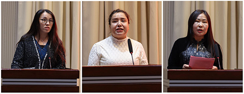 教育学部张新颜作为授课教师代表发言,民丰县民富小学教师海热古丽·穆萨、于田县第一幼儿园党支部书记沈玉萍分别分享了参训感受和收获。