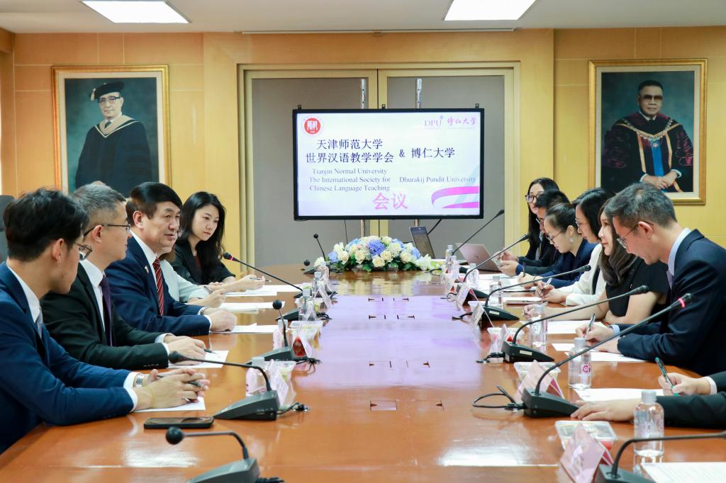 在到访博仁大学期间,钟英华一行同博仁大学常务副校长陈楚娴、校长助理、国际中文学院院长游翔以及中文教育项目相关负责人等进行深入洽谈,双方就进一步深化丝路孔子学院建设、中泰两国学生互换、国际中文教育专业人才联合培养、学生中文学习展示活动组织等议题达成合作共识。
