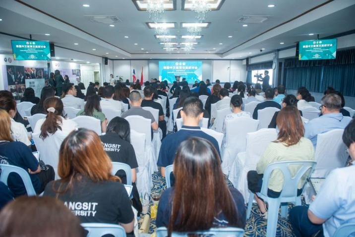 泰国中文教育交流研讨会由曼松德昭帕亚皇家师范大学孔子学院组织承办,曼松德昭帕亚皇家师范大学校长琳达、副校长苏迪蓬及朱拉隆功大学孔子学院、海上丝路孔子学院、海丝帕那空孔子学院、吉拉达孔子课堂等孔子学院(课堂)中外方院长和联盟成员,格乐大学中国语言文化学院、泰国进步海洋丝路学院、宣素那他皇家大学、泰国农业大学、兰实大学、博仁大学、暹罗大学、曼谷语言学院等院校院长、负责人、中文师生代表等200余人参加。