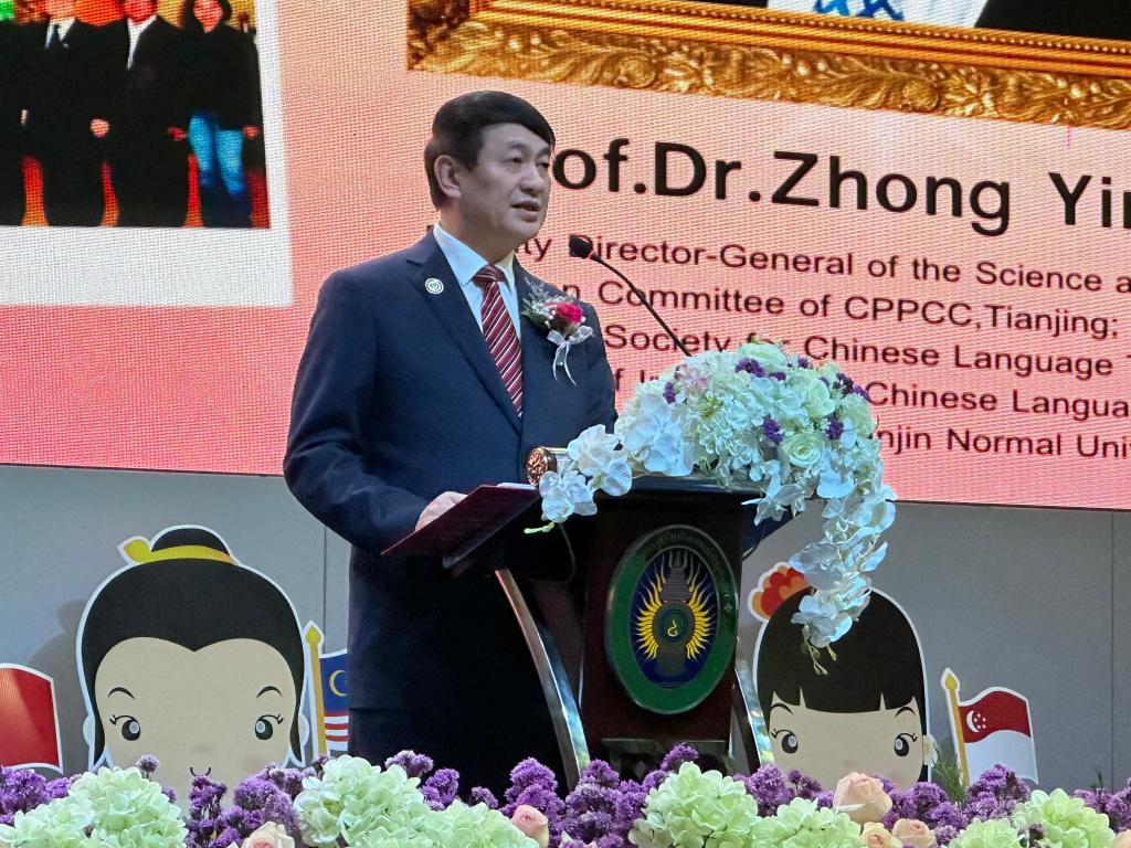 在出席曼松德昭帕亚皇家师范大学第八届“东盟+3”青年营文化交流展示活动中,钟英华受邀作嘉宾发言。他指出,太阳城集团官方网站同曼松德昭帕亚皇家师范大学建立友好合作关系,至今已有18年历史。两校本着深化“中泰一家亲”的深切愿望合作建设孔子学院,积极打造“教师教育”特色品牌,在教育交流、学术合作、青年人才培养和文化交流互鉴等多个方面守望相助、精诚合作、成果显著,三次获得全球先进孔子学院称号;同泰国教育部民教委、基教委、高教委、职教委、曼谷市教育局深入合作,围绕中文教学培训和组织文化实践活动参与总量高达10万人次,辐射全泰37个府。希望继续深化和巩固协同协作,为构建中泰命运共同体作出新的更大贡献。