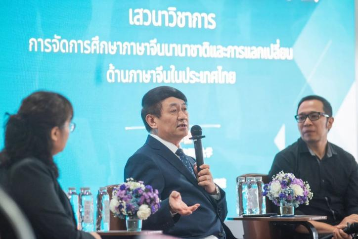 在出席泰国中文教育交流研讨会期间,钟英华同泰国农业大学人文学院学术副院长、泰国农业大学《中国学研究》期刊主编顾雄伟、泰国兰实大学文学院院长助理、中文系主任庄秀玉、朱拉隆功大学外聘专家、泰国华文教师公会理事邵力敏一同作为特邀专家,聚焦泰国中文教育主题,围绕泰国中文教育发展趋势与特点、泰国中文教育教学方法创新、泰国中文教育跨文化交际能力培养等进行交流研讨。