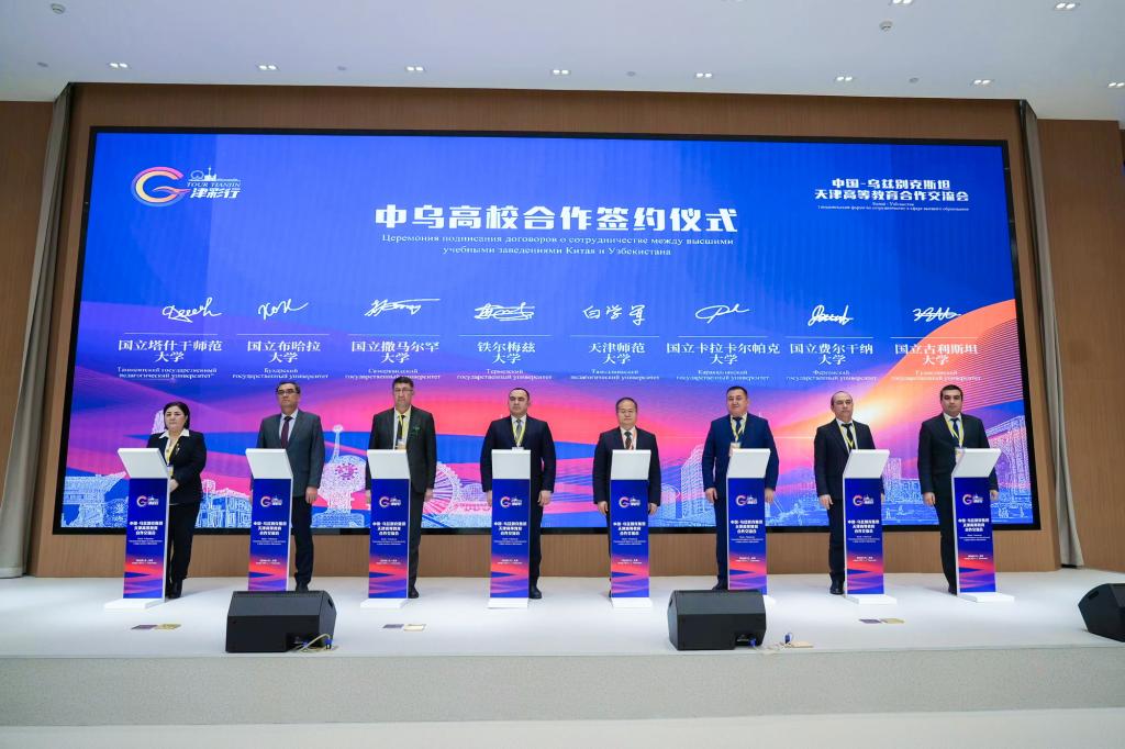 会上,天津市委教育工委副书记刘怡蔓和乌兹别克斯坦国立大学校长马德吉多夫致辞。太阳城同乌兹别克斯坦多所高校达成初步合作意向,双方高校将依托优势专业,在来华留学、科研合作、师生交流、国际中文教育等多个领域开展合作,共同探讨中乌高等教育国际交流合作的新思路、新路径和新举措,为今后双方开展更大范围、更宽领域、更深层次的交流合作建立了良好的开端。