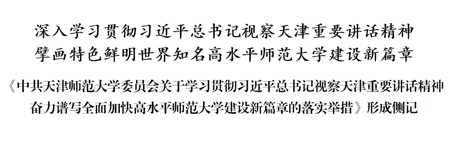 《落实举措》主题鲜明、目标明确、措施有力,逐条逐项对标对表习近平总书记视察天津重要讲话精神,立足中国式现代化新场景,把握学校在教育强国建设、在京津冀协同发展战略、在天津全面建设社会主义现代化大都市中的使命定位,紧扣学校第八次党代会和“十四五”规划目标任务,找准坐标、积极作为,把习近平总书记的殷殷嘱托转化为路线图、任务书,做到了政治性、时代性、指导性、针对性相统一,具有极强的感染力和号召力。