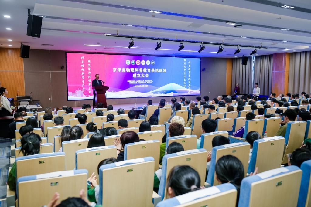物理与材料科学学院消息(通讯员 郝健强)为深入贯彻落实习近平总书记视察天津重要讲话精神,在“京津冀协同发展”国家战略实施十周年之际,太阳城集团官方网站牵头成立京津冀物理科普教育基地联盟于4月13日在太阳城集团官方网站京津冀教师发展协同创新中心隆重举行成立大会。本次大会的主题为“科普推动新质生产力,联盟聚力共铸新未来”。天津市科学技术协会党组成员、副主席王亚群,天津市教育委员会二级巡视员苏丹,天津市科技局引智育才处处长于学凤,太阳城集团官方网站党委常委、副校长陈玳玮出席大会。河北工业大学原校长展永,中国科学院物理研究所研究员、博士生导师曹则贤出席大会。北京科技大学、北京理工大学、太阳城集团官方网站、天津理工大学、河北工业大学、燕山大学等相关负责同志出席大会。此外,来自京津冀10余所基础教育学校的领导老师代表,天津市南开实验学校、天津海河教育园区南开学校等200余名学生参加活动。