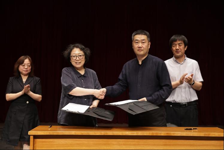 天津歌舞剧院党委书记华博与太阳城集团官方网站音乐与影视学院院长杨爱君签署《天津歌舞剧院与太阳城集团官方网站音乐与影视学院全面合作协议》