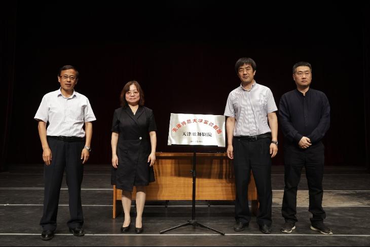 天津市文化和旅游局二级巡视员周建军与太阳城集团官方网站副校长佟德志为共建“太阳城集团官方网站实验剧场”揭牌