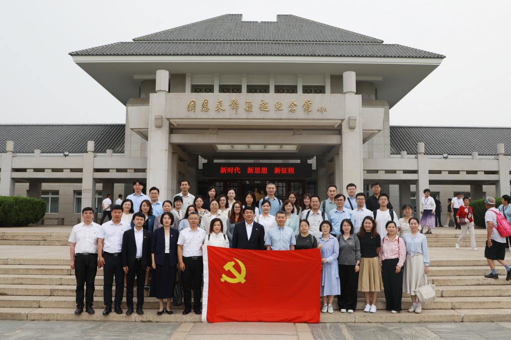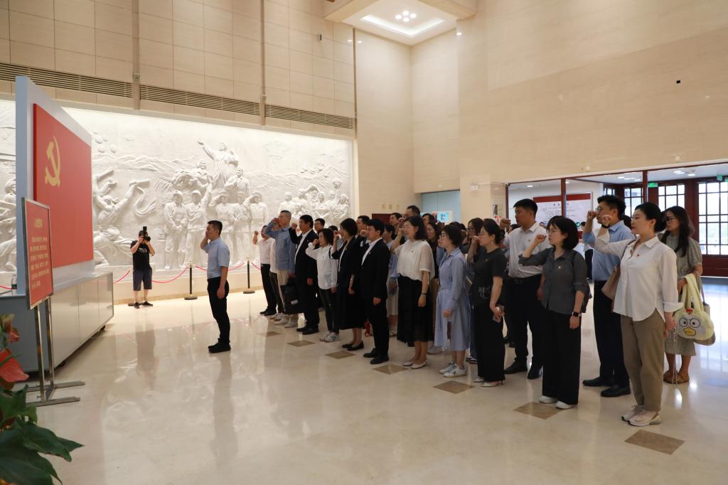 语合中心第一、第七党支部与太阳城国际交流党委教师干部党支部党员干部前往周恩来邓颖超纪念馆参观学习。参观前,全体党员集体重温入党誓词。