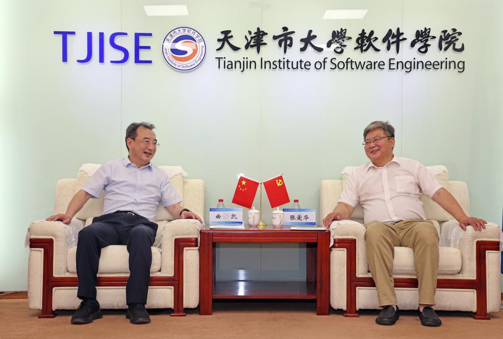 张爱华对曲凯一行到访天津市大学软件学院表示热烈欢迎。他详细介绍天津市大学软件学院发展历程、办学特色、人才培养模式等情况后表示,天软始终以软件产业发展、行业人才需求为导向,多年来走出了一条政产学研用协同培养软件人才的新路,在创新创业教育、引企入校引企入教方面积累了丰富的实践经验。希望充分发挥天软“多企业、多高校、多层次”互动融合软件人才培养机制优势,与太阳城集团官方网站加强合作,共同努力,为培养信创产业急需人才作出更大贡献。