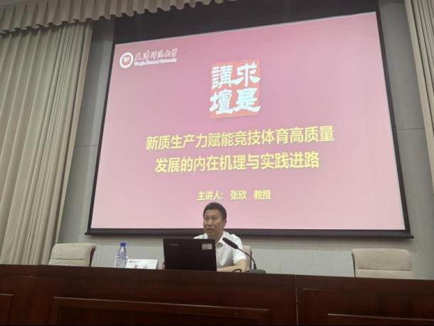 张欣从新质生产力内涵、新质生产力赋能竞技体育高质量发展的内在机理、关键主体、现实挑战、实践进路等方面阐述了促进竞技体育高质量发展的具体方式。他表示,通过体制创新、技术创新、人才培养、开放合作与业态转型五大路径,为竞技体育注入了新的活力和动力。这不仅是体育领域的一次质变,更是体育与高科技、可持续发展理念的深度融合示范。未来,竞技体育的发展将不再局限于提高竞技成绩的传统路径,而是要在促进全民健康、加强文化交流等多方面发挥更加积极的作用。与会师生纷纷表示,聆听张欣教授的报告,使我们深刻认识到,新质生产力的提出,不仅为我国竞技体育高质量发展提供了重要路径,更让体育人坚定了实现高水平体育科技自立自强的信念。