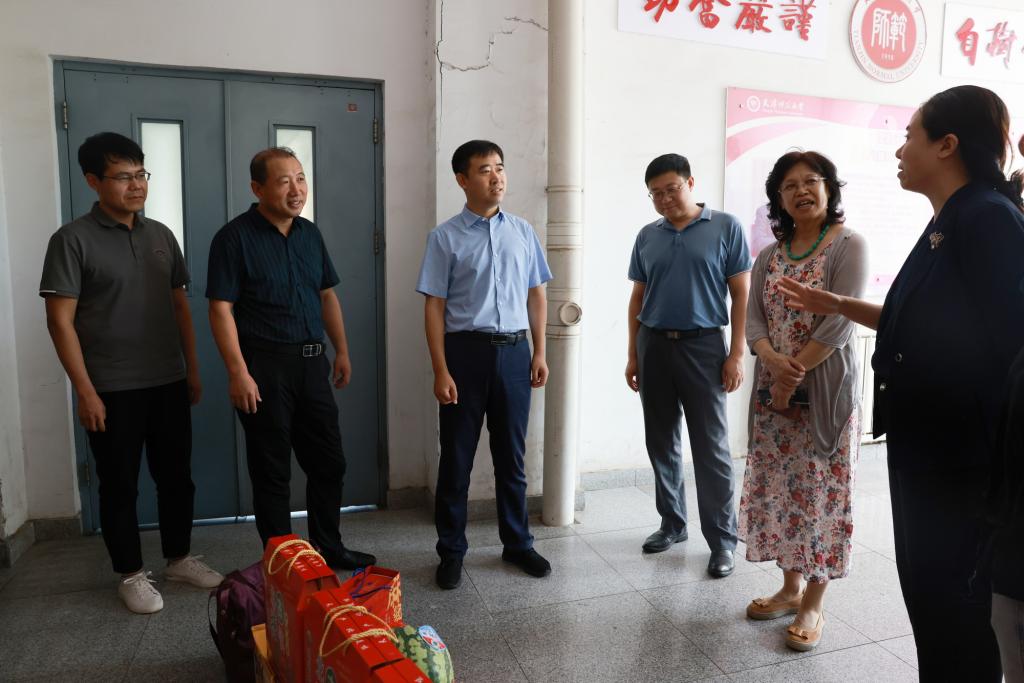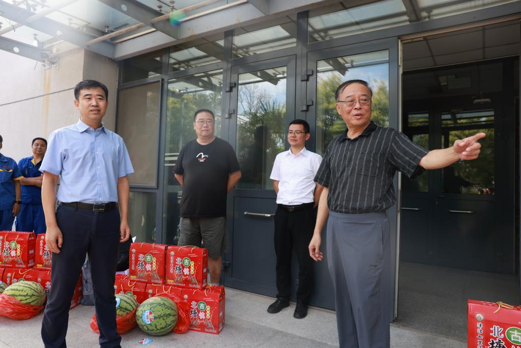 陈泮成先后来到后勤管理处、党委安全工作部、学生就业指导中心、招生管理中心、附属实验学校等地走访慰问,对高温天气下坚守一线工作岗位、确保假期学校各项工作正常开展的教职员工表示感谢,叮嘱大家在确保工作进度的同时,注意高温防暑,平安度夏,并送去由校工会精心准备的解暑慰问品。送的是清凉,暖的是人心。在岗职工感谢学校的关心和惦念,表示将不辱使命,认真履行工作职责,继续以饱满的精神状态坚守岗位,严守底线,有序推进各项工作高质量完成。