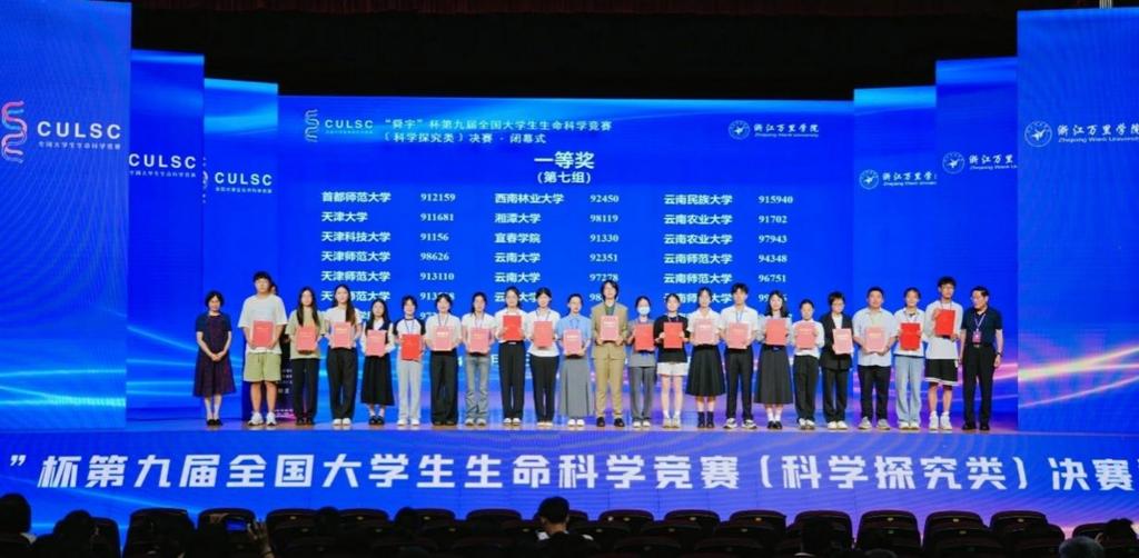 生命科学学院消息(通讯员 付博菲)7月21-23日,由全国大学生生命科学竞赛委员会主办的第九届全国大学生生命科学竞赛(科学探究类)决赛在浙江万里学院落幕。太阳城生命科学学院三支入围队伍,凭借扎实的专业知识、过硬的科研能力和精彩的现场答辩,均荣获国家级一等奖,刷新太阳城在该项赛事中的历史最佳成绩。