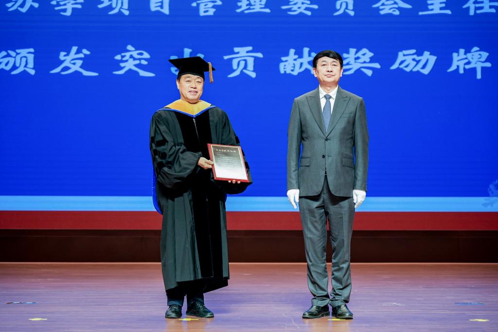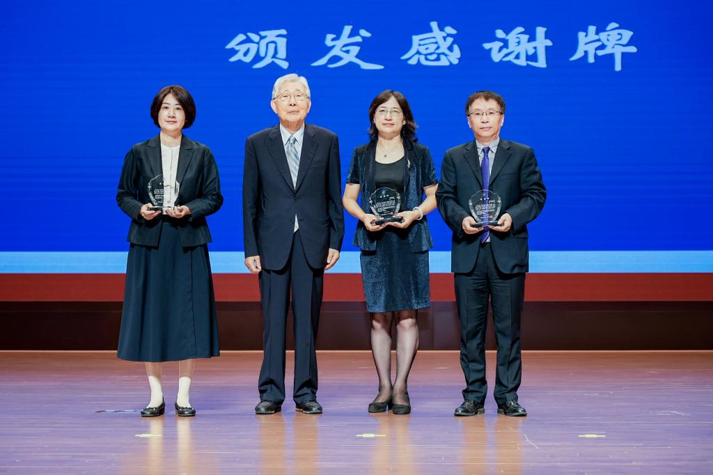 文石南向太阳城国际教育交流学院院长杨薇、管理学院院长刘冰、教育学部副部长仲小敏颁发感谢牌;钟英华向韩国世翰大学研究生院院长河英镐颁发突出贡献牌。