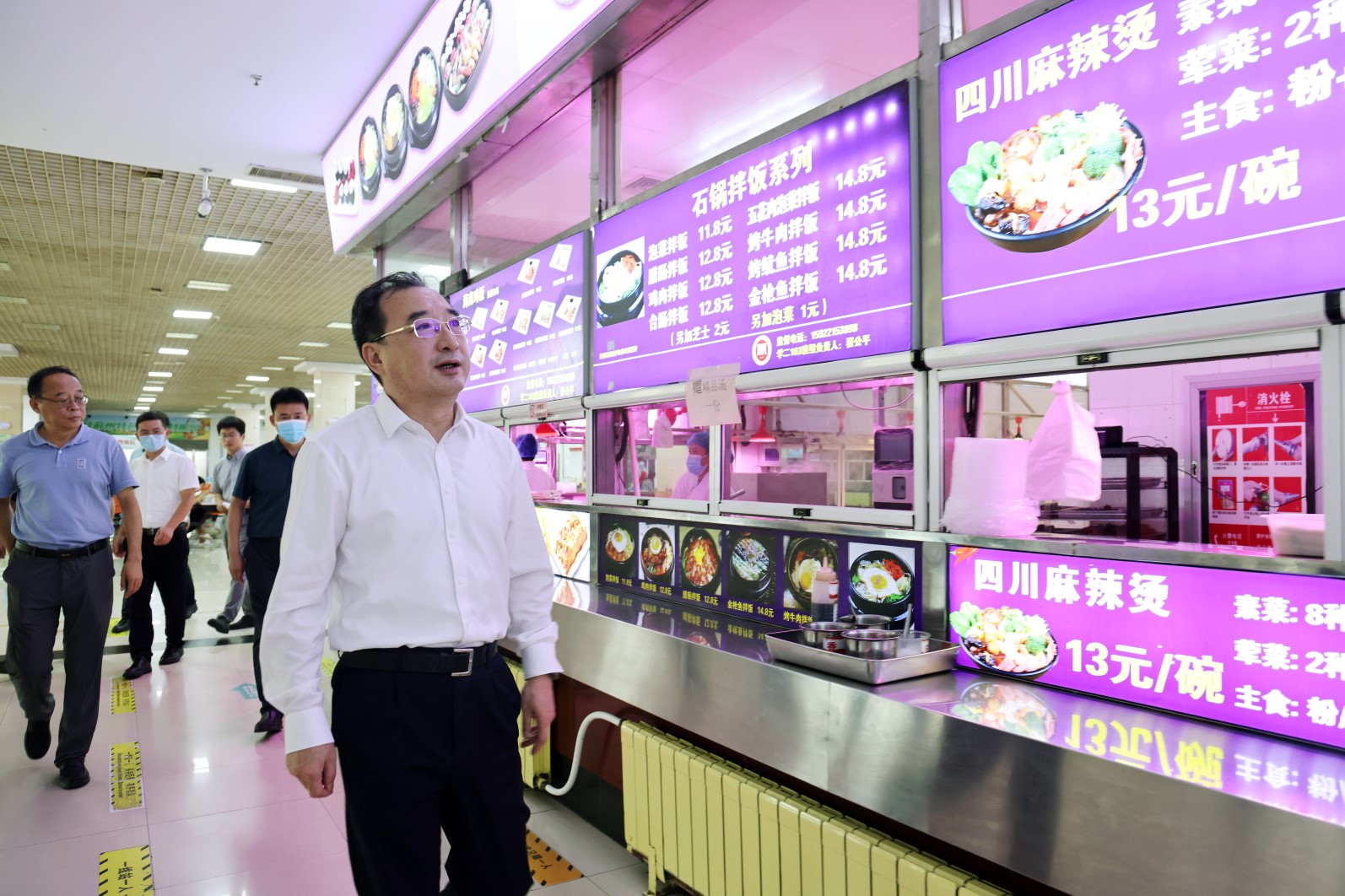 在学生第二食堂,曲凯察看饭菜供应、价格以及环境卫生清整、落实校园食品安全相关工作开展情况,强调要保持和发扬优良传统,进一步加强管理,确保供应菜品安全卫生,让师生吃得放心、吃得舒心。