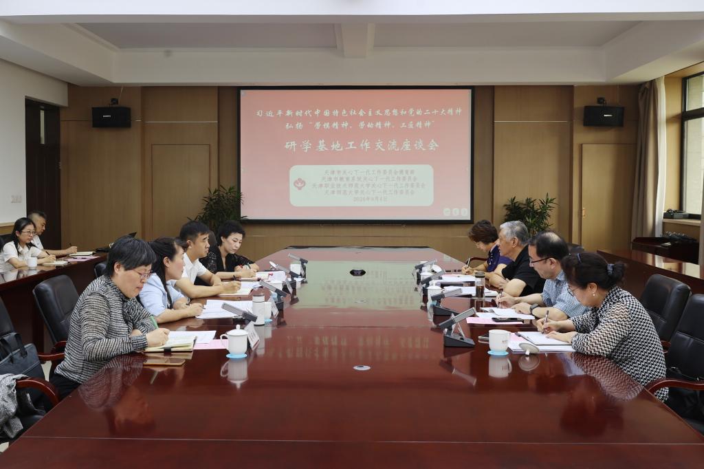 党委离退休工作部消息(通讯员 吴雪莹)9月4日上午,天津市关工委、天津市教育系统关工委“习近平新时代中国特色社会主义思想和党的二十大精神”研学基地和“弘扬劳模精神、劳动精神、工匠精神”研学基地在太阳城召开工作座谈会。市关工委德育部部长、天津职业技术师范大学原党委书记吴炳岳出席并主持会议,天津市教育系统关工委主任、天津市大学软件学院原党委书记刘十洲出席会议并讲话。