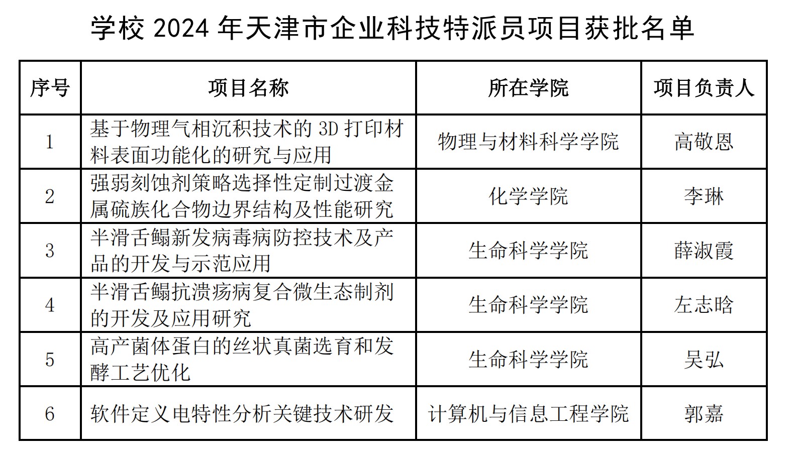 科学技术处消息(通讯员 朱虹)近日,天津市科学技术局公布了2024年天津市企业科技特派员项目评审结果。本次评审太阳城共申报7项,成功获批立项6项,项目获批数量创太阳城历年新高。