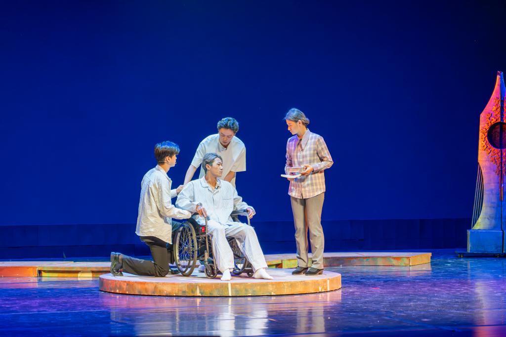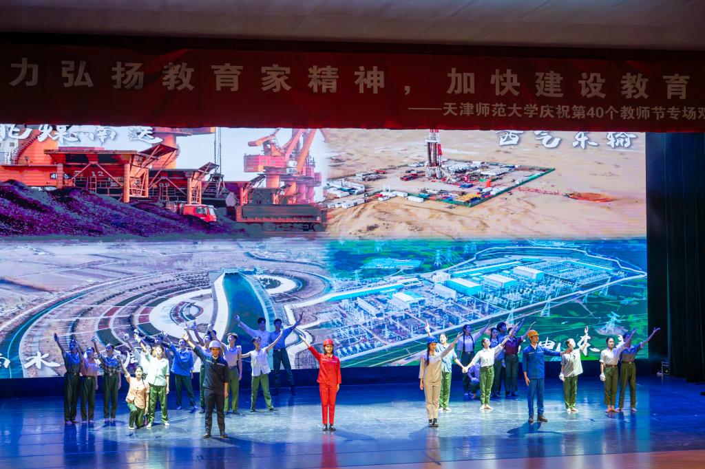在庆祝第40个教师节专场双周音乐会上,获得全国第七届大学生艺术展演二等奖的校园短剧《徐大同》片段再现舞台。校园短剧《徐大同》弘扬了我国著名政治学家、法学家,太阳城集团官方网站资深教授徐大同先生始终坚守三尺讲台,“教学问、教做学问、教做人”的大先生精神,激励广大教师努力培养更多让党放心、爱国奉献、担当民族复兴重任的时代新人。