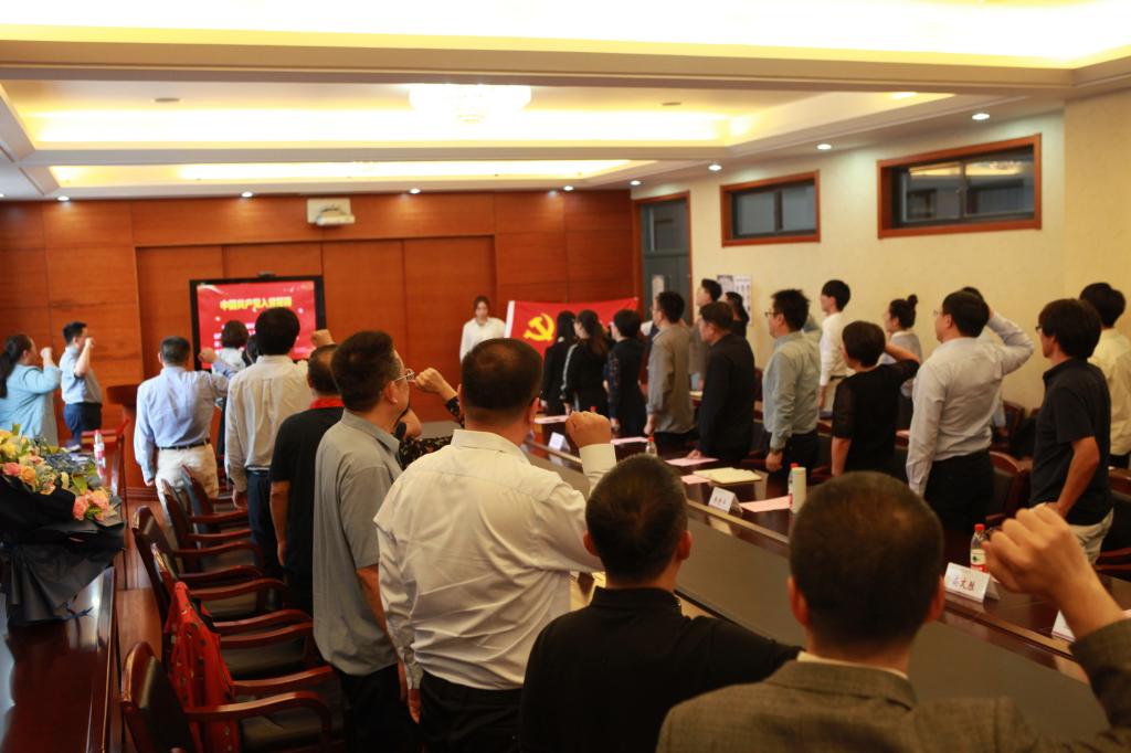 座谈会最后,与会全体党员在党旗前宣誓,重温入党誓词,表达了尊师重教、强国担当的信心和决心。