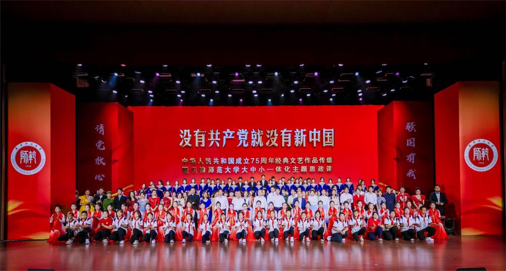 75年风雨兼程,75年峥嵘岁月。75年沧桑巨变,75年伟大跨越。参演师生用他们洪亮的声音表达昂扬的激情,用整齐划一的动作展现饱满的热情,用真挚的眼神诠释热爱祖国、歌颂祖国、祝福祖国的真挚情感。五彩绚丽的舞台展示,耳熟能详的优美曲调,再现了一代又一代共产党人薪火相传、前仆后继,以担当实干践行初心使命,抒发了全校师生听党话、跟党走的信心和决心。