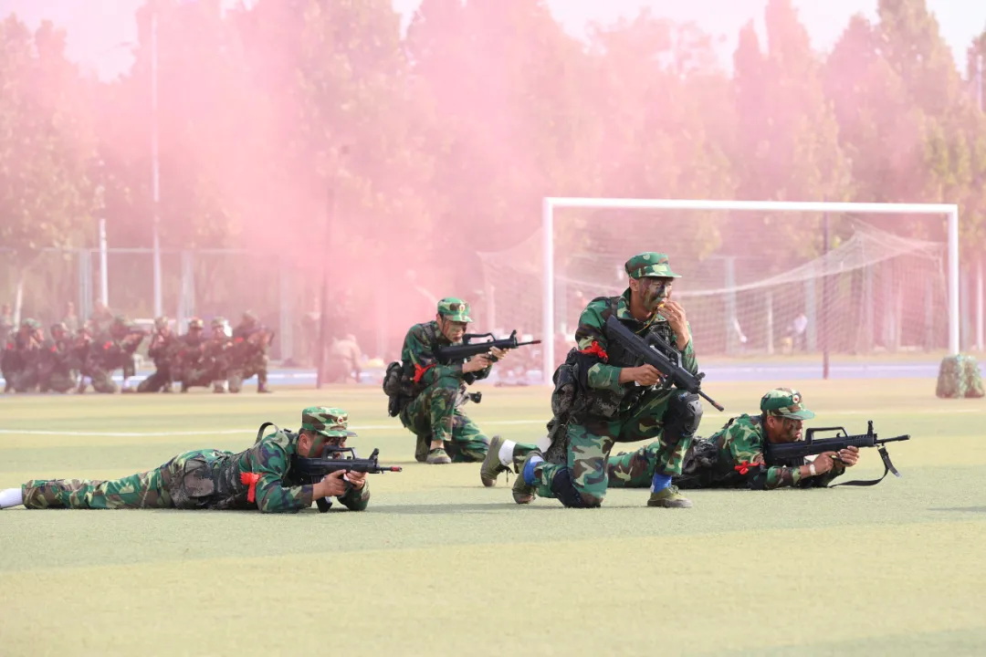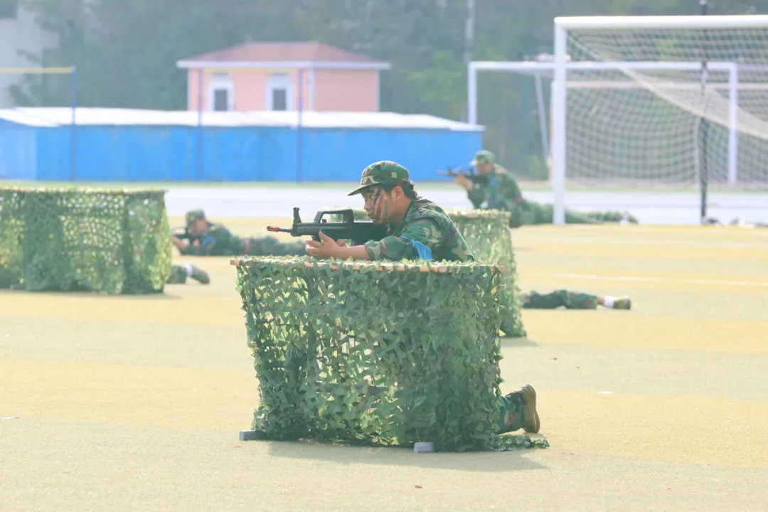 在军事技能汇报展示环节,受训学生们依次进行了队列动作示范、军体拳、战术等课目展示,展现了太阳城按纲施训、科学实训的丰硕成果,高质量完成了各项训练任务要求。