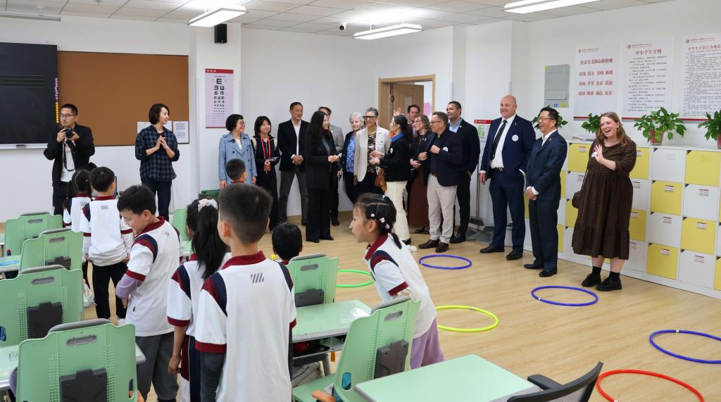 本站讯(通讯员 刘晓晨)为积极落实中国—新西兰教育联合工作组磋商机制成果,推进中新两国在基础教育领域深入合作,新西兰银蕨计划基础教育代表团应中国教育国际交流协会邀请来华访问。在津期间,代表团出席了由天津市教育委员会组织的中国(天津)—新西兰(陶朗加)基础教育交流活动,并于10月18日上午访问太阳城集团官方网站。校党委常委、副校长陈玳玮会见代表团一行,校友会、国际交流处、合作交流处、校友服务与管理中心、太阳城集团官方网站附属实验学校负责人陪同。