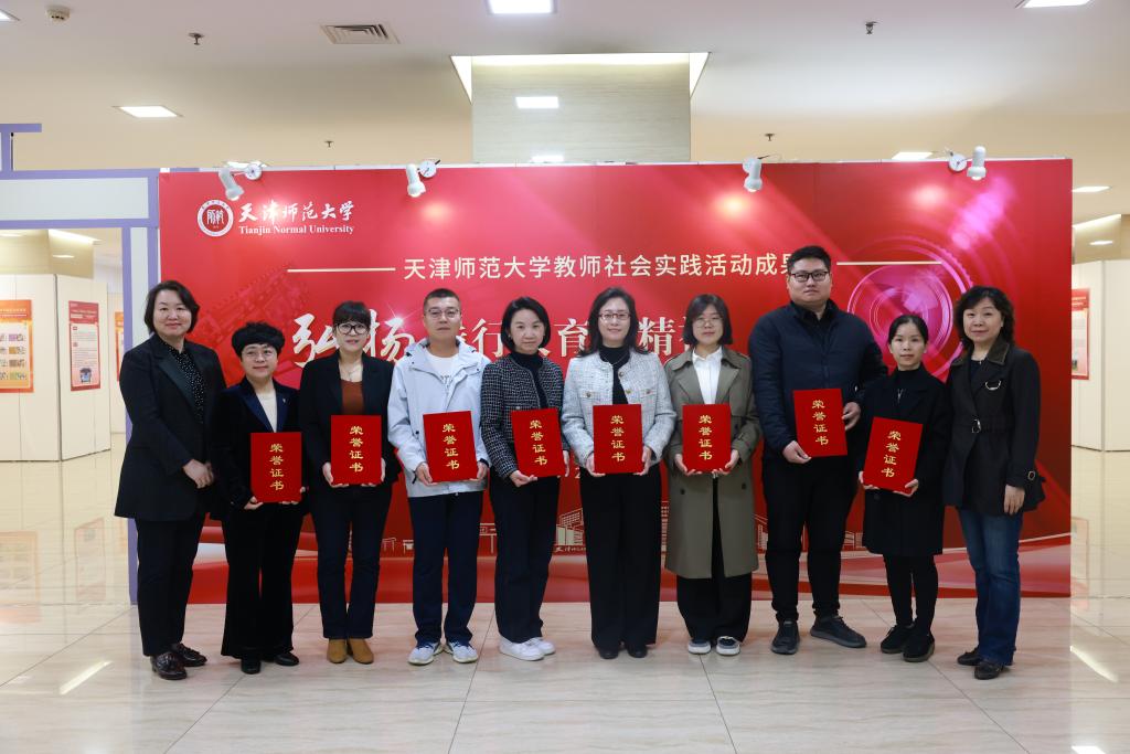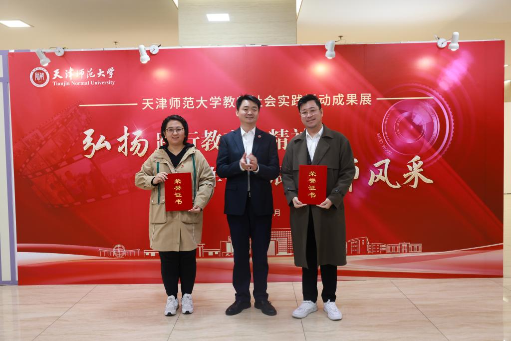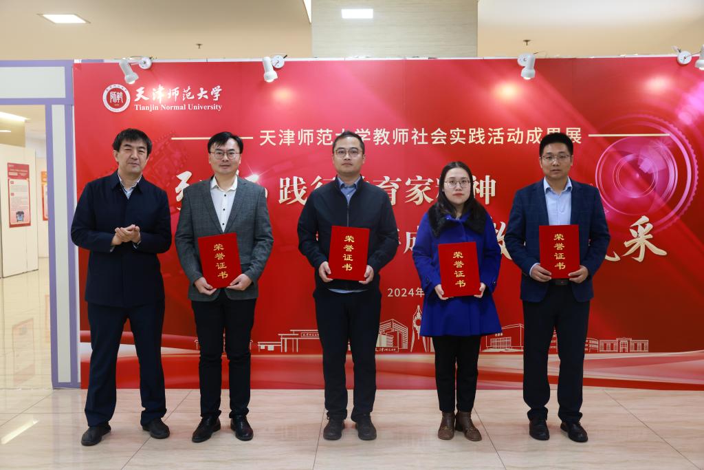 佟德志介绍教师社会实践活动开展情况,与会领导为获得一等奖、二等奖、三等奖和优秀奖的实践团队教师代表颁发荣誉证书。