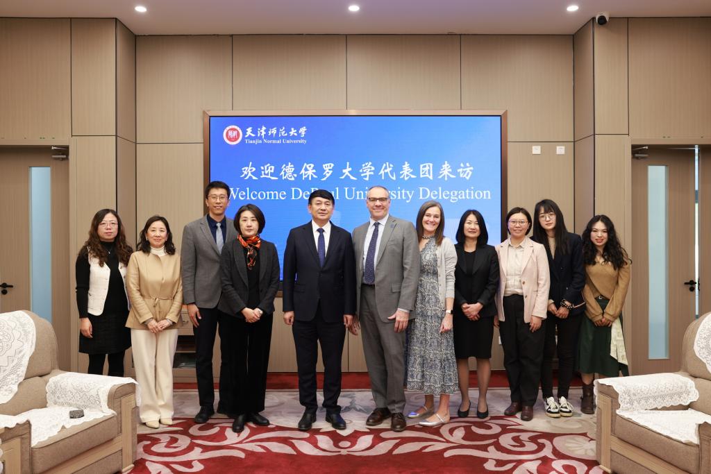 白学军向德保罗大学代表团介绍了学校基本情况和优势学科。作为天津市唯一面向基础教育输送优质师资的师范大学,学校加大数字化教育资源的投入力度,全力培养适应新时代需求的高素质教师。希望两校未来持续发挥教师教育特长,相互分享教育经验,进一步加强英语语言的线上课程协作,开拓中小学基础学科师资培训,共同探索更符合时代需求的教师培养路径,谱写合作共赢新篇章。