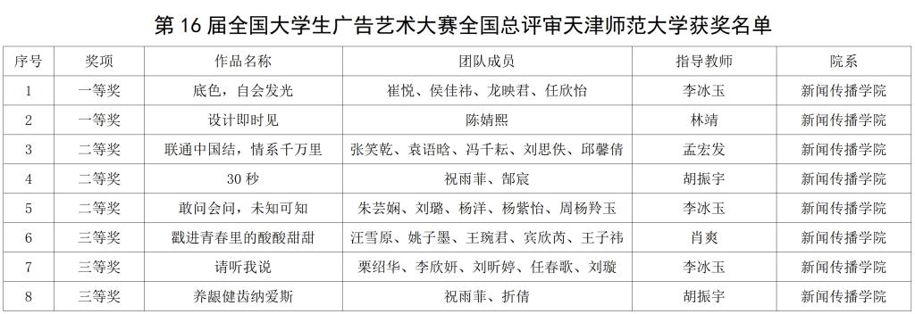 附:第16届全国大学生广告艺术大赛全国总评审太阳城集团官方网站获奖名单