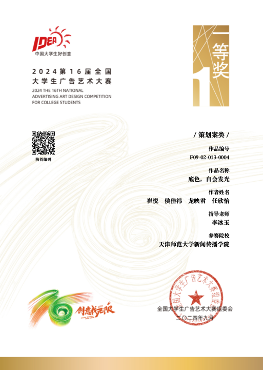 全国大学生广告艺术大赛是目前全国规模大、覆盖高等院校广、参与师生人数多的全国性高校学科竞赛大赛,旨在促进广告艺术专业教育改革、启迪学生创新思维、强化专业实践能力、提高学生专业素养;活跃大学生的课外文化生活,激发大学生的创意灵感,加强大学生的实践能力、团队意识和创新精神的培养;推动人才培养模式和实践教学创新改革,为优秀人才脱颖而出搭建良好的竞赛平台,提升广告艺术高等教育的人才培养质量。此次竞赛共有来自全国29个赛区的1873所高校报送了77万余组作品参赛。经过学校初评、赛区评选、全国总评选,最终257组作品荣获全国一等奖,获奖率仅为万分之三,含金量高。
