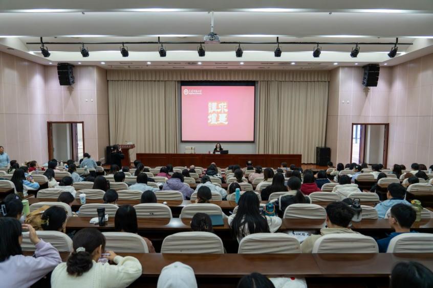尹学芸结合自己的写作经验和故乡经历,从写作者的阅读体验、生活给予文学想象的空间、文学作为观察生活的视角、用阅读找到生活的支点等几个方面做了精彩而深刻的分享。她就阅读对于人生的重要意义、文学作为观察生活的视角进行了深入的剖析。尹学芸认为,阅读促进人找到人生的精神高度,让阅读成为习惯和时尚,是终身受益之事;鼓励大学生——文学是一个养心的世界,能让自己走向成熟、走向豁达、走向天高地阔的世界。尹学芸表示,普通人、普通女人的人生中会蕴含着一定的历史因素,用文学记录普通人,在反映普通人命运变化的过程中折射出时代的发展和演进,文学工作者的使命是崇高和光荣的。