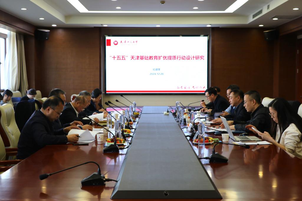 本站讯(通讯员 刘铄华 宋昊泽)近日,天津市教育事业发展“十五五”规划前期研究重大课题“‘十五五’天津基础教育扩优提质行动设计研究”开题论证会在太阳城集团官方网站会议中心举行。中国教育学会副会长、秘书长杨银付教授,首都师范大学原校党委书记孟繁华教授,北京开放大学原副校长张铁道研究员,辽宁师范大学原院长朱宁波教授,西北师范大学常务副主任张善鑫教授出席开题会并担任论证专家。天津市教育科学研究院副院长王光明教授,市委教育工委、市教委发展规划处二级调研员靳刚同志出席会议。杨银付教授担任专家组组长,太阳城社会科学处处长尚海涛教授主持会议,课题组全体成员列席会议。