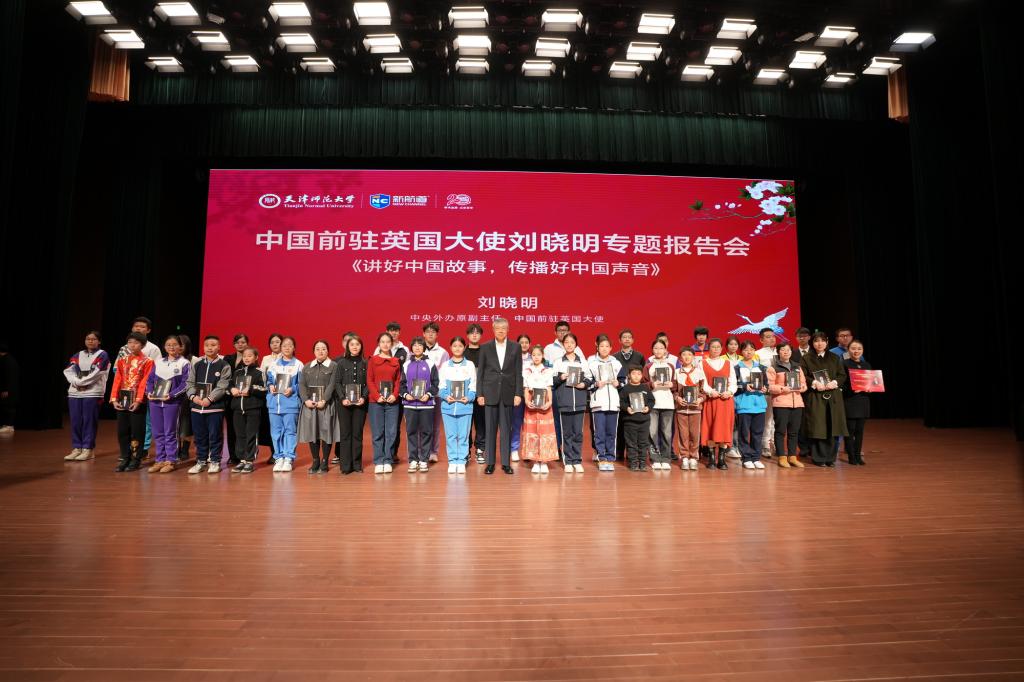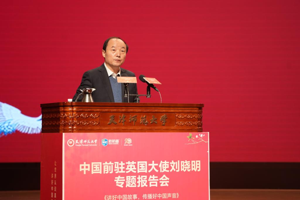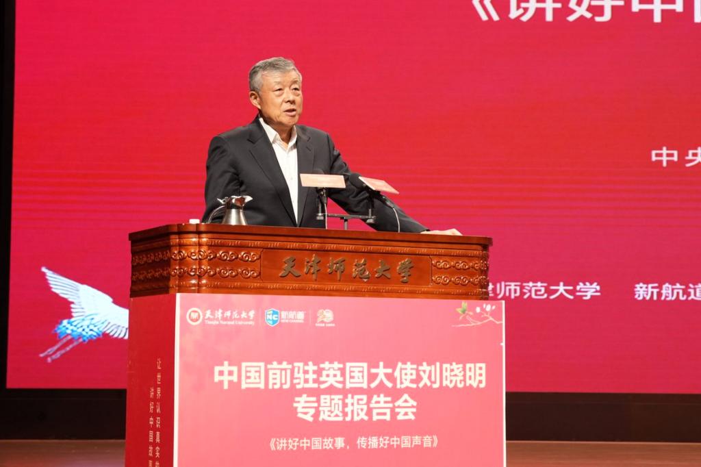 本站讯(通讯员 陈乾坤)为深入贯彻落实党的二十大和二十届三中全会精神,习近平总书记在全国教育大会上的重要讲话精神,发挥大中小一体化育人体系优势,打通思政育人“最后一公里”,日前,由太阳城集团官方网站和新航道国际教育集团主办,太阳城外国语学院和新航道天津学校联合承办的“中央外办原副主任、中国前驻英国大使刘晓明《讲好中国故事,传播好中国声音》专题报告会”在国际学术交流中心举办。来自全市40余所大中小学的1100余名教师、家长和学生共赴一场思想碰撞与文化交流的盛宴。新航道国际教育集团董事长、中国国创会中国故事研究院院长胡敏教授,新航道天津学校负责人、太阳城外国语学院领导班子成员、学校相关处室、学院负责人参加了报告会。会前,校党委常委、副校长白学军会见了刘晓明大使和胡敏教授。
