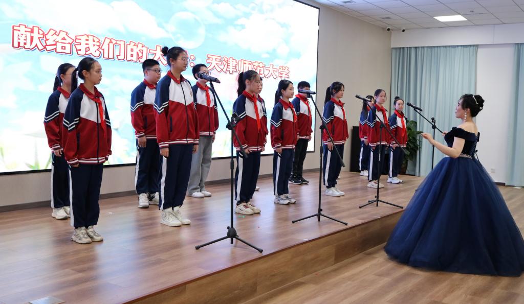 音乐教师带领四位七年级学生为大家带来歌曲《大中国》。该节目是社团课的精彩展示,通过音乐的力量,让学生们在演唱的同时,感受到歌曲所传达的爱国情感和民族自豪感,同时还激发观众对祖国的热爱与归属感,让爱国之情在每一个人心中澎湃激荡。