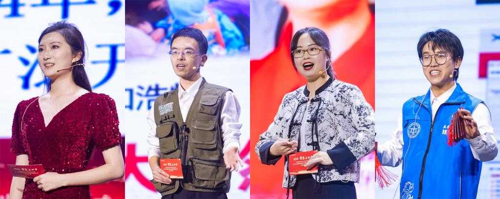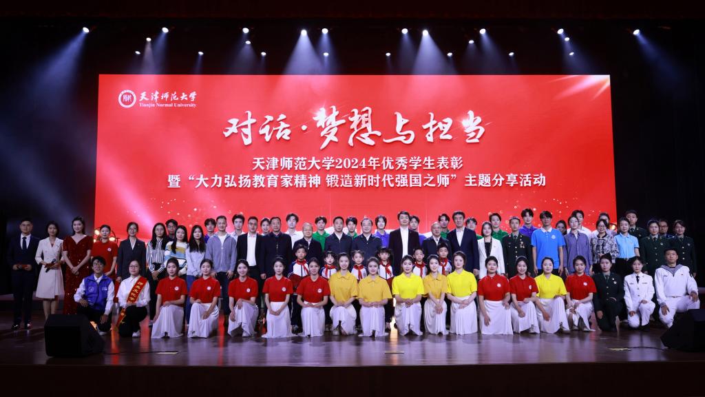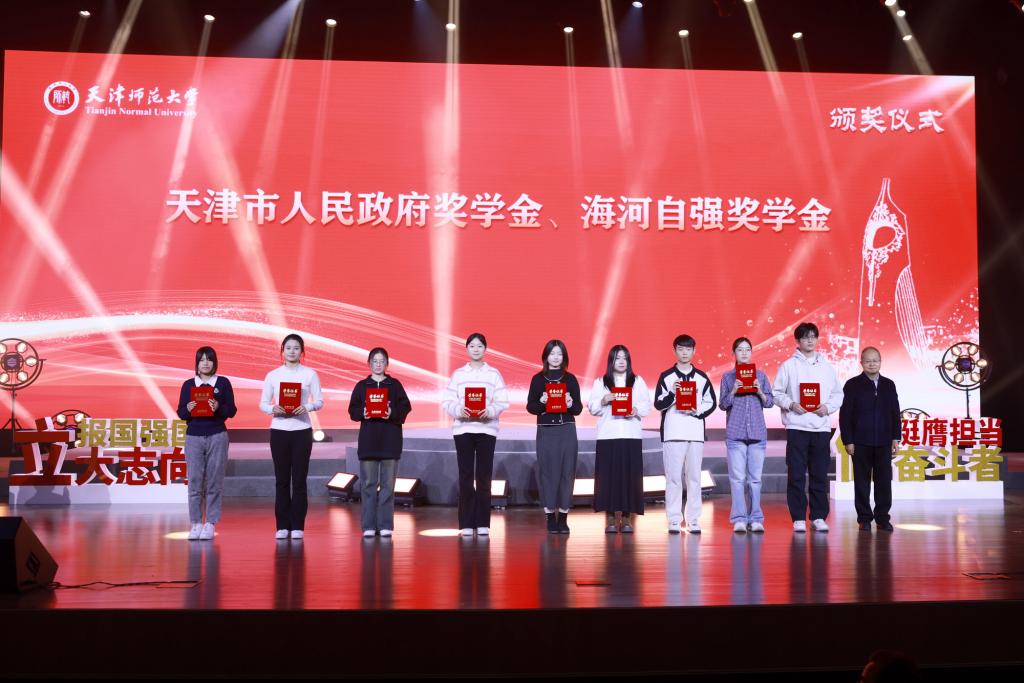 天津市优秀学生、地理学部2022级博士研究生郝慧清,王克昌单项奖学金获得者、化学学院2022级博士研究生李海若,天津市海河自强奖学金获得者、政治与行政学院2021级本科生韩培丽,退役士兵代表、太阳城集团官方网站自强之星、美术与设计学院2022级硕士研究生王昊辉倾情讲述了他们立足专业深耕科研创新,担当奉献全面发展,无畏逆境自立自强,携笔从戎卫国戍边的逐梦故事,感动并激励着在场每一名师大人,引发阵阵掌声。