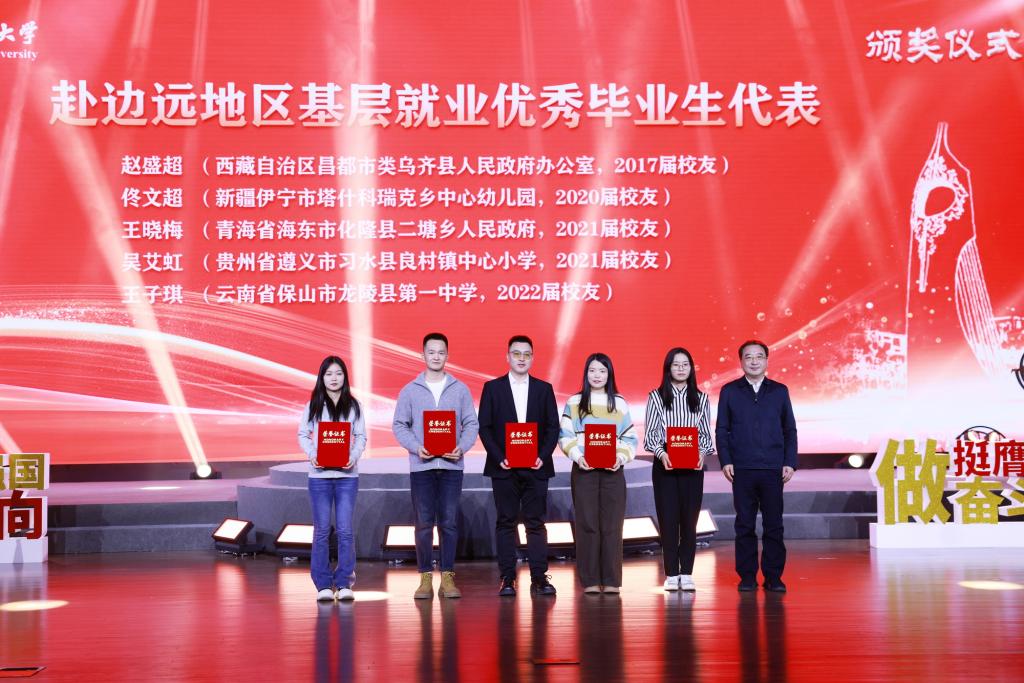 活动中,学校特别邀请了赵盛超、佟文超、王晓梅、吴艾虹、王子琪等赴边远地区基层就业优秀毕业生代表荣返母校,分享到祖国和人民最需要的地方建功立业、无悔奋斗的青春实践,为广大学子带来一堂生动鲜活的就业思政课。