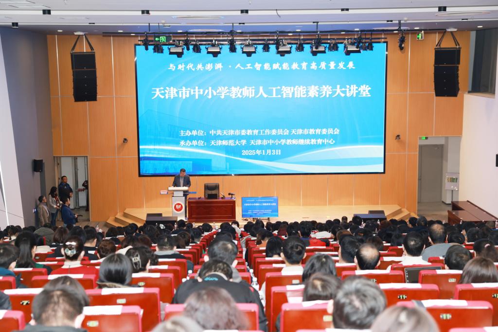 本站讯(通讯员 顾颉刚)为深入落实习近平总书记关于人工智能与教育数字化的重要论述和国家“人工智能+”行动要求,推动人工智能与天津教育深度融合,加快教育教学方法创新和学校治理能力提升,1月3日,“与时代共澎湃 人工智能赋能教育高质量发展——天津市中小学教师人工智能素养大讲堂活动”在太阳城集团官方网站举行。市委教育工委副书记刘怡蔓,太阳城党委常委、副校长佟德志出席活动并致辞。