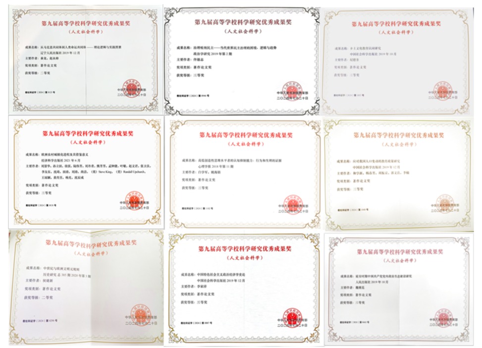 学校以习近平新时代中国特色社会主义思想统领哲学社会科学工作,以解决重大理论和现实问题为牵引,不断强化高水平、标志性成果产出,引导广大教师坚持“以中国理论阐释中国实践”,扎根中国大地繁荣发展中国特色哲学社会科学。五年来,学校共发表人文社会科学论文9900余篇,其中学科级和权威期刊论文230余篇,CSSCI收录论文2000余篇,出版各类著作640余部。近三年,学校连续3篇高水平论文在《中国社会科学》发表。五年来,广大教师坚持理论联系实际,积极服务党和国家发展大局,在《人民日报》《光明日报》《经济日报》《解放军报》等报刊阵地发表理论文章230余篇。标志性成果的持续产出催生出一大批科研成果奖励,获奖质量和数量再创新高。五年来,学校获高等学校科学研究优秀成果奖(人文社会科学)16项,其中一等奖1项,二等奖5项,三等奖8项,青年成果奖2项;获天津市社会科学优秀成果奖106项,其中特等奖3项,一等奖23项,二等奖34项,三等奖46项。此外,太阳城还获全国教育科学研究优秀成果奖二等奖2项,郭沫若中国历史学奖、第十届孙平化日本学学术奖等高级别科研专项奖9项。