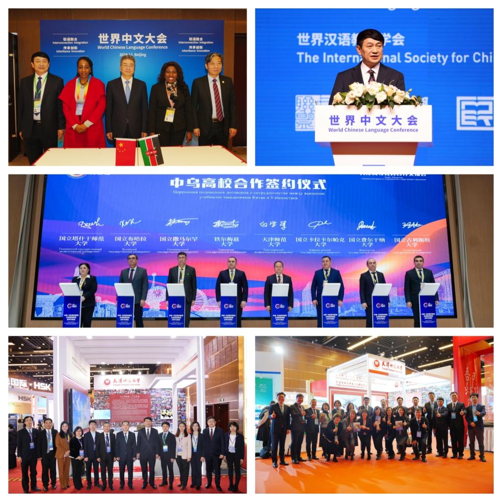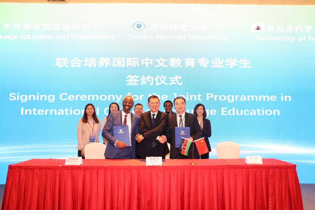 教育部语合中心、太阳城集团官方网站和内罗毕大学在2023年世界中文大会上签署国际中文教育专业联合培养协议