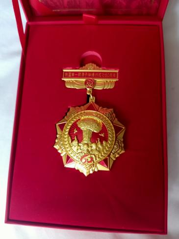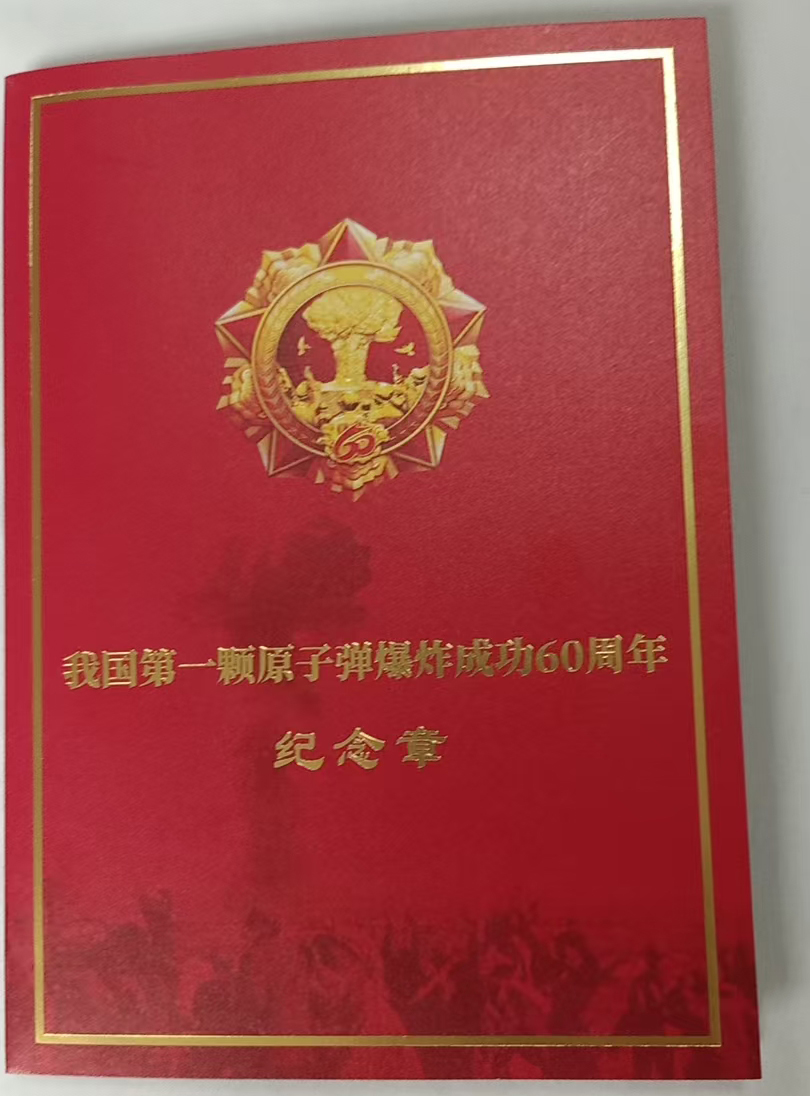 值此我国第一颗原子弹爆炸成功60周年之际,中核集团仅以此纪念章,永远铭记在党的领导下中国核工业走过的艰苦创业历程和老一辈核工业人创造的不朽功勋,激励新时代核工业人在新征程上大力弘扬“两弹一星”精神,传承“四个一切 ”核工业精神,践行“强核报国、创新奉献 ”新时代核工业精神,推动核工业高质量发展,全面推进核强国建设,为推进中国式现代化建设、实现中华民族伟大复兴作出新的更大贡献。