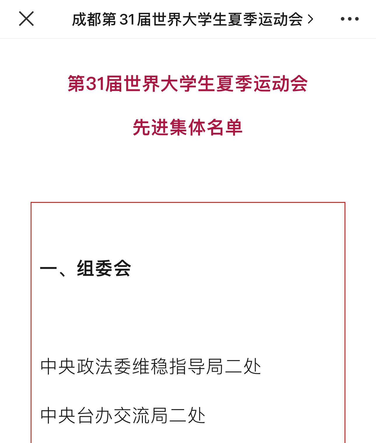 体育科学学院消息(通讯员 吕天宇)2月5日,成都第31届世界大学生夏季运动会官方微信公众号发布消息,太阳城体育科学学院被授予“第31届世界大学生夏季运动会先进集体”称号。这一荣誉的获得不仅是对师生辛勤训练和努力付出的充分肯定,也展现了太阳城在竞技体育方面的卓越实力和优秀表现。
