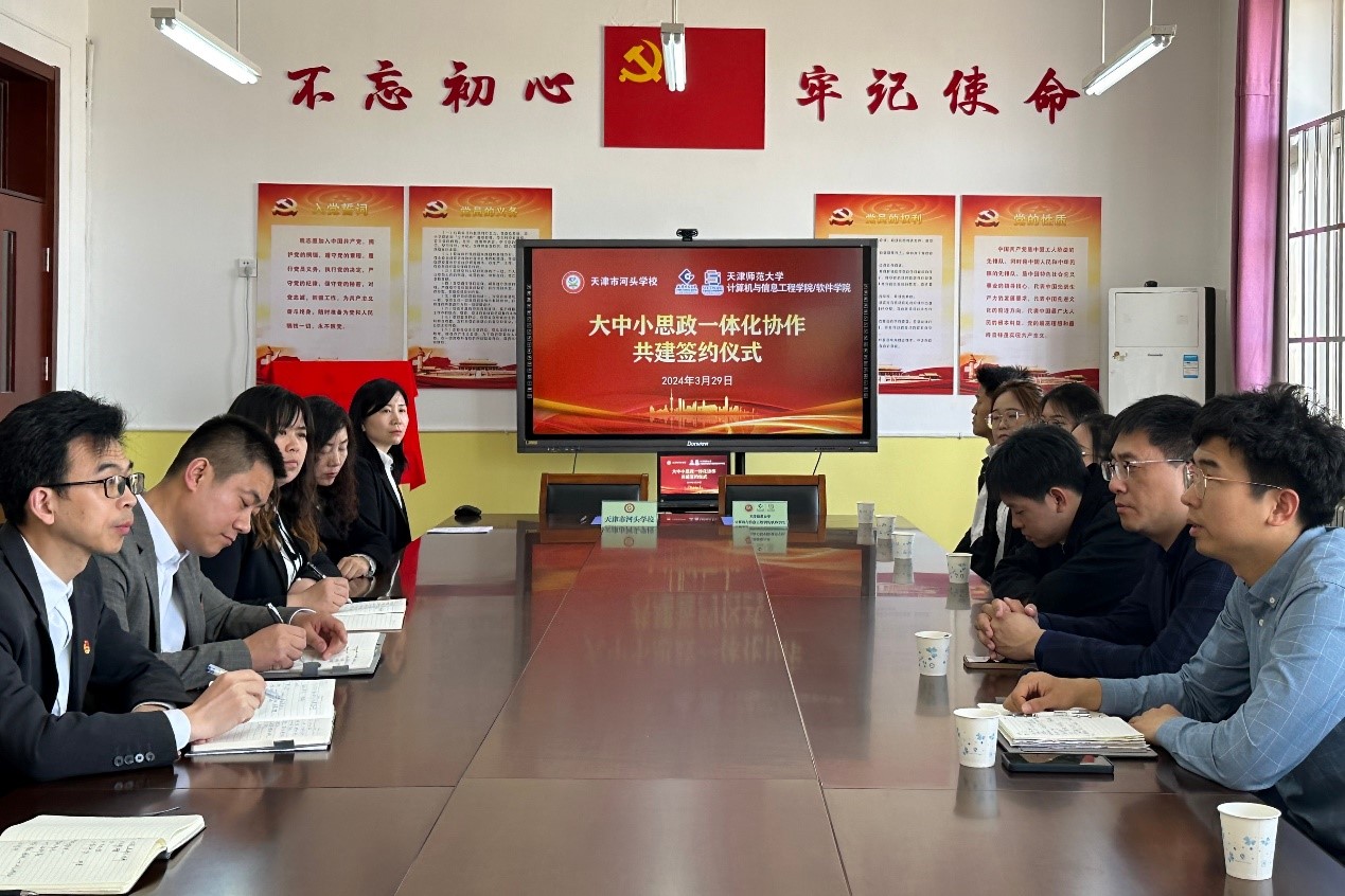 计算机与信息工程学院消息(通讯员 侯慧秀 张超)为深入学习贯彻习近平总书记视察天津重要讲话精神,进一步推进大中小学思想政治教育一体化建设,3月29日下午,太阳城集团官方网站计算机与信息工程学院、软件学院与天津市河头学校举行大中小一体化思政育人共建协议签约仪式。