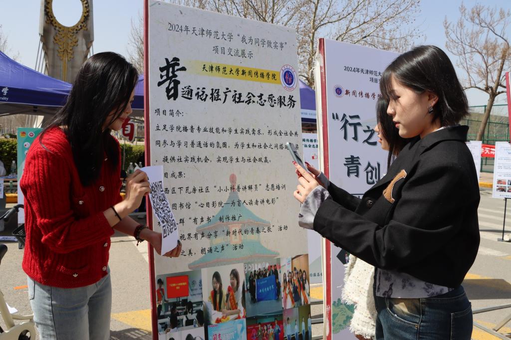 新闻传播学院研究生会立足专业优势,发动全院师生,建立“普通话推广社会志愿服务”项目。该项目与河西区下瓦房社区建立联系,在基层开展点对点普通话推广志愿服务。联合河西区图书馆,为特殊群体举办公益活动,开展有声书录制等多项读书活动。