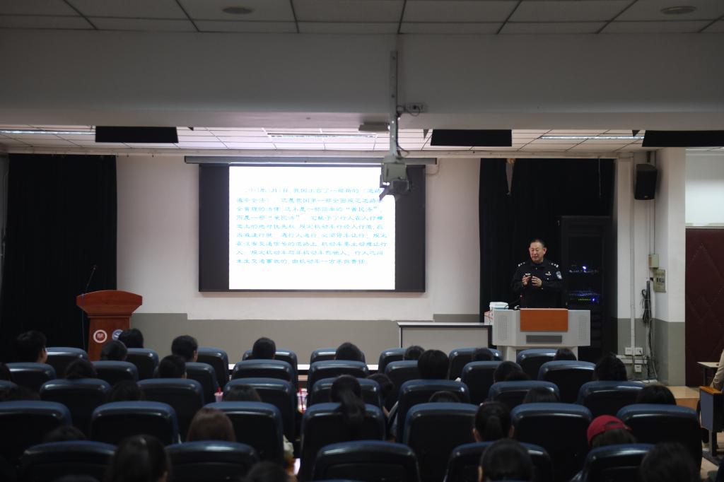 刘保红以丰富的执法经验和生动详实的案例,围绕着“全国交通安全日”的宣传教育精神,深入浅出地阐述了交通安全的重要性,并对日常生活中常见的交通违法行为进行了重点剖析,警示大家严格遵守交通法规,做到知法、懂法、守法。讲座中,他不仅详细解读了一系列常见的交通标志标线的含义和功能,还通过现场演示的方式,生动展示了交警常用的手势指挥信号,使广大师生能够更直观地理解和掌握重要交通指示规则。此外,针对校园内外普遍存在的停车问题,刘保红专门就如何规范停车进行了细致讲解,引导师生正确停放车辆,避免因不规范停车行为导致的交通拥堵和安全隐患。还他针对突发交通事故的处理流程和应对措施,着重强调了事故发生后的自救互救、及时报警等关键步骤,让在校师生对紧急情况下的自我保护和合理处置有了深刻认识。
