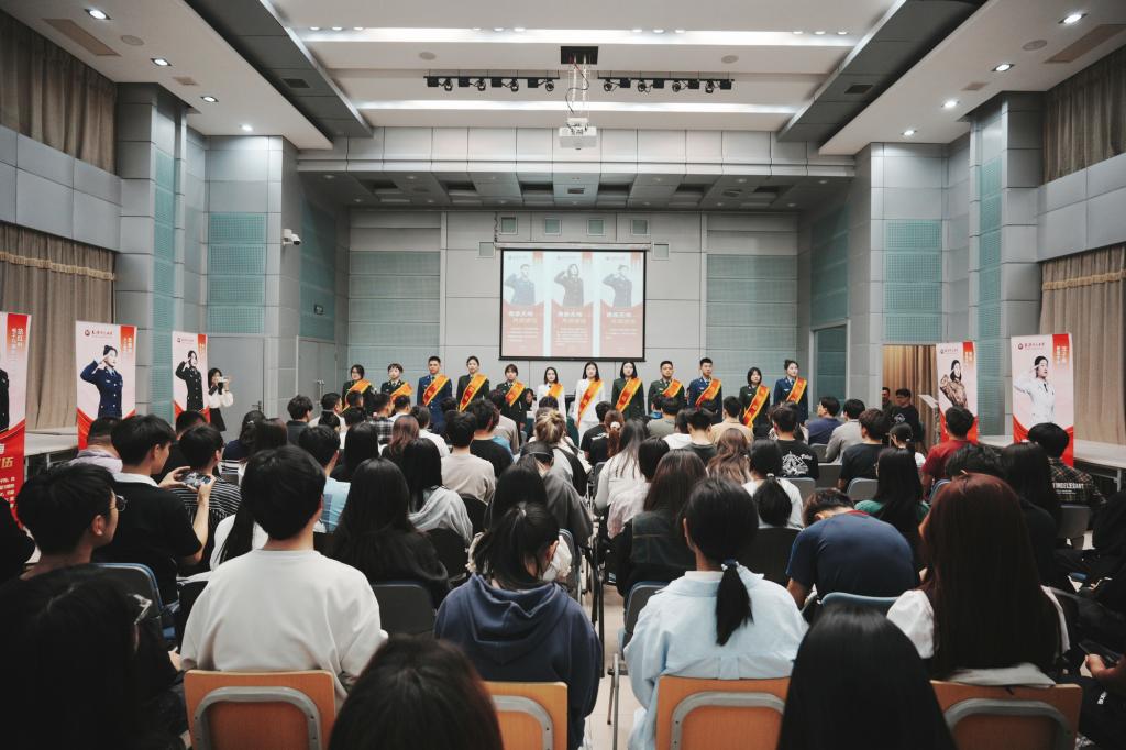 退役大学生士兵代表,外国语学院邵磊、新闻传播学院闫雨薇、管理学院沈子墨在会上依次发言,他们深情回顾了在军营的峥嵘岁月,表达了回到母校继续深造的激动心情。他们表示,将珍惜学校提供的宝贵机会,努力学习专业知识,不断提升自身素质和能力。同时,他们也将继续发挥军人的优良品质,积极参与学校的国防教育活动,为传承红色基因、弘扬爱国主义精神贡献自己的力量。退役老兵代表,美术与设计学院硕士研究生王昊辉在发言中,鼓励退役返校同学努力学习专业知识和政治理论,用部队培养的优良作风、军事技能和所学的专业知识回馈学校和社会对退役军人的关爱,在新的战场上为党和人民再建新功。