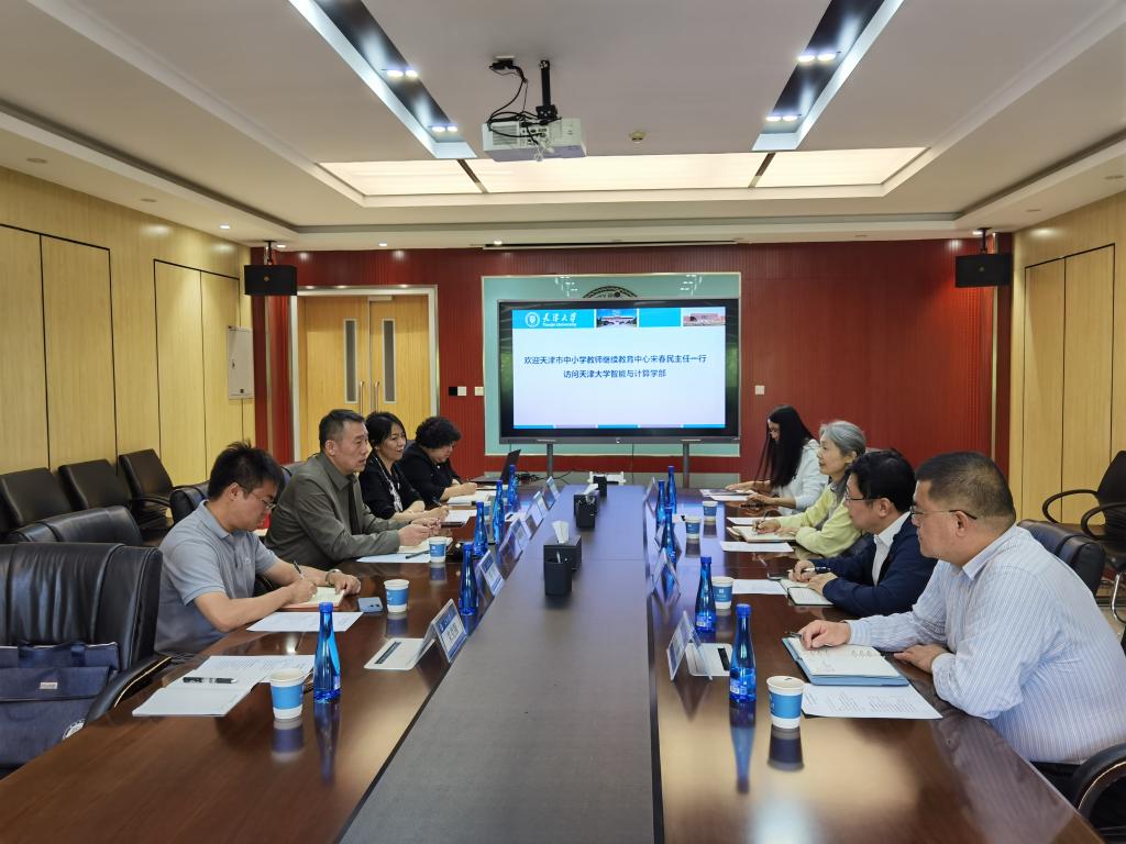 交流会上,中小学教师继续教育中心负责同志介绍了中心的基本情况、我市中小学教师培训的现状和未来规划。天津大学智能与计算学部负责同志从发展历程、专业学科、师资队伍、平台建设、人才培养、科学研究和社会服务等方面详细介绍了学部情况。