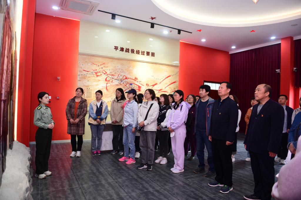 在平津战役前线司令部旧址—孟家楼村的平津战役精品展馆。一段段壮烈的史实和一串串光辉的名字全面生动地展现了平津战役的全过程,将党员同志们重新带入到了浴血奋战的革命战斗岁月中。聆听讲解的过程中,党员们怀着崇敬之情参观了各个展厅,观看了当年珍贵历史文物和图片。