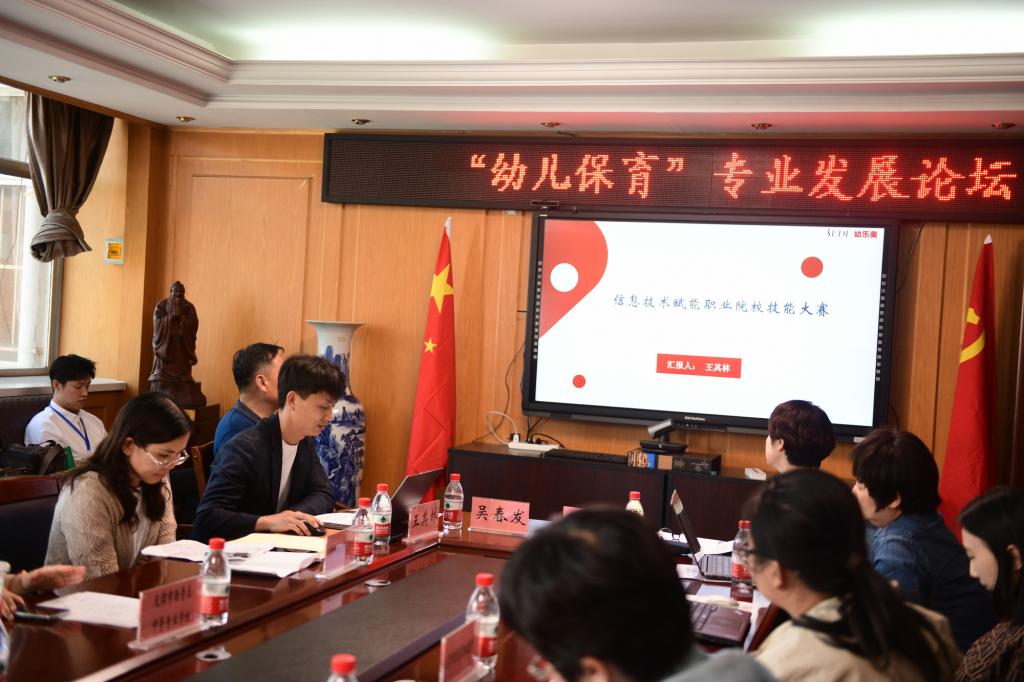 学前教育学院消息(通讯员 贾佳琪 贺溪)5月11日,由天津市幼儿师范学校主办“幼儿保育专业发展论坛”在太阳城学前教育学院举办。本次论坛汇聚了国内知名专家、天津市各个中职学校代表共计30余人,围绕“新时代背景下幼儿保育专业发展”的主题展开了深入探讨与交流。本次专业发展论坛由学前教育学院教学副院长兼赛项专家苏爱洁主持。