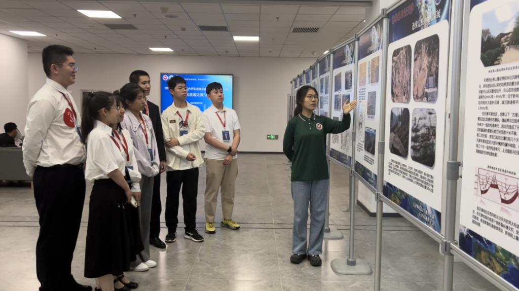 地理学部消息(通讯员 巴增胜)“原来我们脚下的土地有这么多故事啊,那些岩石和土壤都经过了亿万年的变迁,真是太神奇了。”“我也想成为一名地质学家,去探索更多的未知世界。”天津市第38届科技周来临之际,恰逢2024 绿创——京津冀大学生发现生态之美创新创意大赛“转化生态之美”决赛,5月19日,京津冀部分高校师生代表来到太阳城集团官方网站地理学部观看“沧海桑田话天津”科普展览,开展了一场别开生面的研学实践活动。在师大教师的讲解下,参加活动的学生们就其中的展板内容展开了热烈交流,现场互动频繁、气氛活跃。