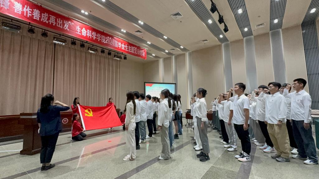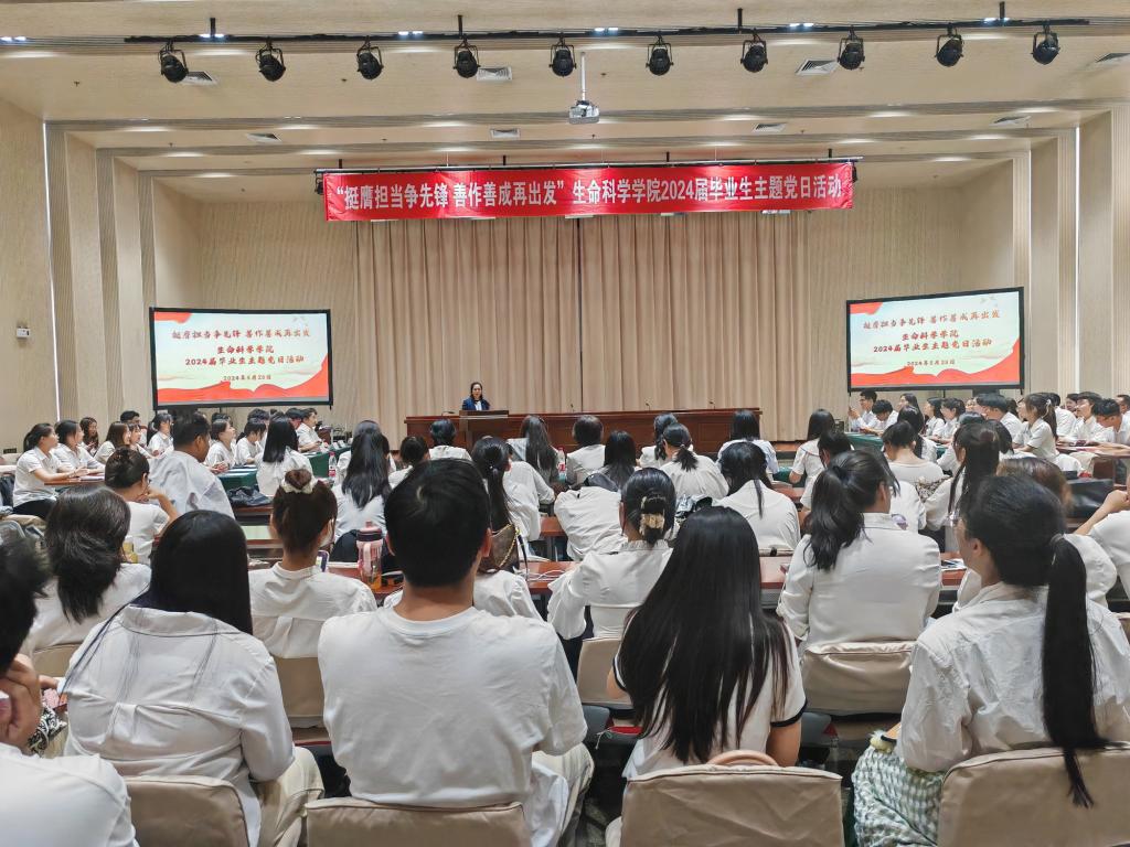 生命科学学院消息(通讯员 付博菲)5月28日,生命科学学院在会议中心三楼多功能厅召开“挺膺担当争先锋 善作善成再出发”2024届毕业生主题党日活动。学院党委书记石婕、校党委学工部副部长许纯、师生党员代表及全体2024届毕业生党员参加活动。